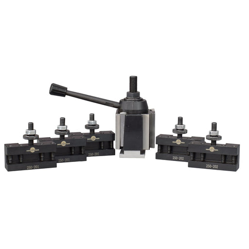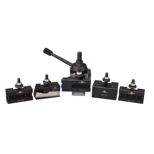 Quick Change Toolpost Set, Wedge Type #200 (BXA) with 5 holders: (1) 250-201 straight Holder, 1/4-5/8" Capacity (1) 250-202 Straight w/V Groove fo...