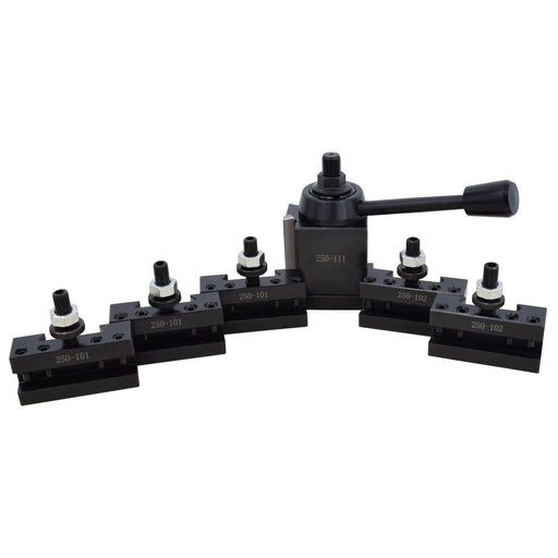 Quick Change Toolpost Set, Wedge Type #100 (AXA) with 5 holders: (1) 250-101 Straight Holder, 1/4-1/2" Capacity (1) 250-102 Straight w/V Groove ...