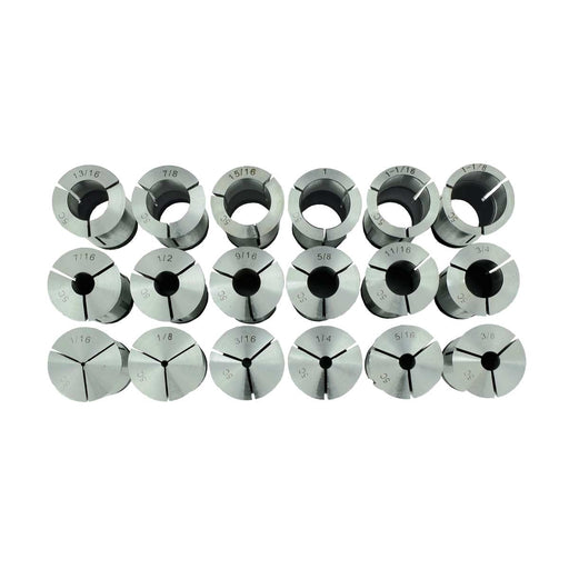 18 Pc set covers most common sizes, from 1/16" to 1-1/8", every 1/16th size Fits any machine / accessory with 5-C Spindle Taper Precision Ground C...